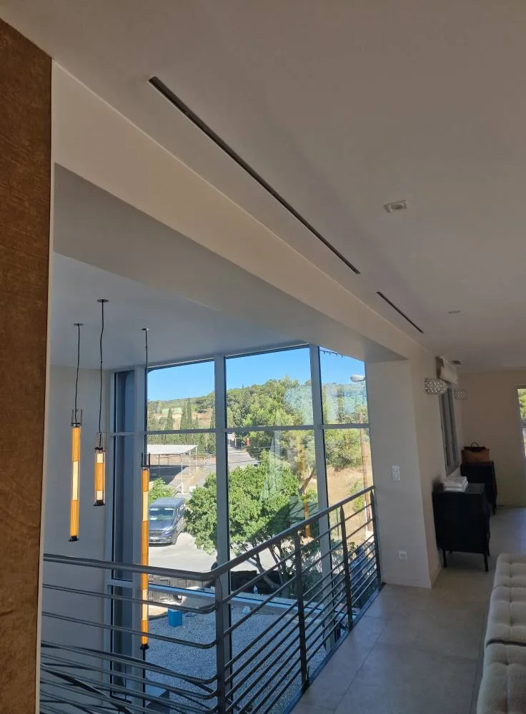 Grilles de diffusion linéaire invisibles à l'étage et consoles sur le Rdc .