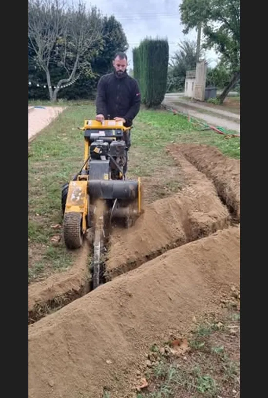 Ici, un client voulait alimenter son local technique piscine et mettre en place de l'arrosage automatique sur son puit